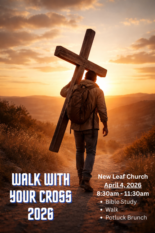 New Leaf Youth 6th-12th Grade StudentsEvery 2nd & 4th Saturday6:30-8:30pm Walk With Your Cross 2026 Bible Study (30 min)Walk (1 hour)Potluck Brunch (90 min)Saturday - April 4, 2026 | 8:30-11:30amat New Leaf Church